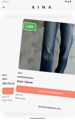 Ulimwengu wa mitindo unakuwa rahisi na wa kufurahisha ukiwa na AINA. Telezesha kidole kushoto au kulia ili kugundua mchanganyiko wa mavazi uliotayarishwa mahsusi kwako, ukifurahia uzoefu wa kuvutia unaofanana na kugundua mambo mapya. Akili bandia ya AINA inajifunza kutokana na chaguo na mwingiliano wako, ikiboresha mapendekezo yake ili kukuletea nguo zinazofanana kabisa na ladha yako. Hii inamaanisha kuondoa usumbufu wa kutafuta, kuepuka ununuzi usio wa lazima, na kufanya maamuzi sahihi ya mitindo yanayoendana na utu wako.