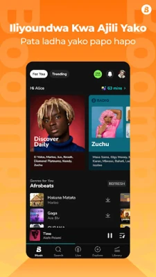 Gundua ulimwengu mpya kabisa wa muziki na burudani na Boomplay, kituo chako kikuu cha sauti za kuvutia. Kwa mkusanyiko mkubwa wa nyimbo zaidi ya milioni 100, Boomplay inakuletea uteuzi usio na kifani wa vibao vipya zaidi vya Kiafrika na nyimbo zinazovuma kimataifa. Mfumo wetu mahiri unajua ladha yako ya muziki kuliko yeyote, ukikupatia orodha za kucheza zilizobinafsishwa na mapendekezo ya ajabu yatakayokusaidia kugundua wasanii wapya na nyimbo unazopenda. Kadiri unavyosikiliza, ndivyo uzoefu wako unavyozidi kuwa sahihi na wa kufurahisha.