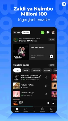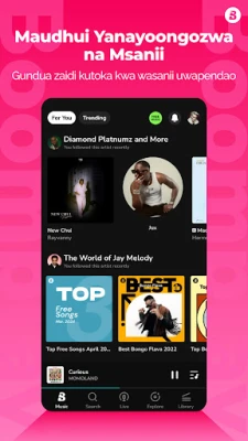 Boomplay inakupa uhuru kamili wa muziki. Hifadhi nyimbo, albamu, na orodha za kucheza unazozipenda kwa urahisi ili ufurahie muziki wako bila intaneti na bila kutumia data yako. Programu hii pia hutumika kama kicheza media chako chenye nguvu, kikicheza faili zako zote za ndani za sauti na video. Pata fursa ya kuungana na mamilioni ya wasanii mashuhuri kama Diamond Platnumz, Rayvanny, Harmonize, na wengine wengi, ukipitia aina mbalimbali za muziki kama Bongo Flava, Afropop, Hip Hop, na Amapiano. Kila mara unapocheza au kushiriki muziki kupitia Boomplay, unasaidia moja kwa moja kukuza na kuonyesha talanta za wasanii unaowapenda.