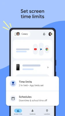 Katika ulimwengu wa leo unaobadilika haraka kidijitali, Family Link inatoa suluhisho la uhakika kwa wazazi wanaotafuta usawa kati ya uhuru na usalama kwa watoto wao. Ukiwa na Family Link, unaweza kuunda miongozo thabiti ya matumizi ya vifaa, kuhakikisha watoto wanajifunza kutumia teknolojia kwa busara. Weka vikomo vya muda maalum wa kutumia kifaa kila siku, na panga ratiba tofauti za shule na burudani ili kusaidia kupanga muda wao kwa ufanisi. Pia, dhibiti programu wanazotumia, weka vikomo kwa baadhi, au ruhusu matumizi yasiyo na kikomo kwa programu za kielimu, huku ukizuia kabisa zisizofaa.