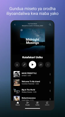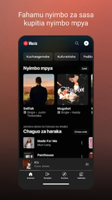 Kila tukio lina sauti yake. Chagua miseto iliyopangiliwa kikamilifu kwa vipindi vyako vya mazoezi, nyakati za kupumzika, au hata tafakari. Unaweza pia kubuni orodha zako za kucheza kwa urahisi, ukitumia mapendekezo ya nyimbo au hata kushirikiana na wapenda muziki wenzako ili kuunda mkusanyiko kamili. Maktaba yako Iliyowekewa Mapendeleo inakuhakikishia kuwa nyimbo, video, wasanii na albamu zote unazozipenda na kuzihifadhi zinapatikana kwa urahisi. Endelea kugundua upeo mpya wa muziki kupitia miseto iliyoratibiwa kama vile "Gundua" na "Vibao Vipya", au chunguza makundi kulingana na aina mbalimbali ikiwemo Hip Hop, Pop, Rock, Kpop, na zaidi. Furahia pia muziki kulingana na hisia zako za wakati huo – iwe ni kutuliza, kujihisi vizuri, kujaza nguvu, kulala, au hata kusafiri na kusherehekea. Usisahau kuangalia chati za muziki zinazovuma duniani kote ili kukaa mbele ya matukio.