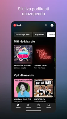 Anza safari ya muziki isiyo na kifani ukitumia jukwaa hili bunifu. Furahia ulimwengu wa sauti usiopatikana kwingine, kuanzia matamasha ya kusisimua ya moja kwa moja hadi miseto adimu na matoleo maalum ya nyimbo. Programu hii imebuniwa kukuletea maudhui ya kipekee yanayokidhi hisia zako zote za muziki. Gundua maelfu ya orodha za kucheza zilizopangiliwa kwa ustadi, zikiwa zimetengenezwa kwa umakini kuvuka aina mbalimbali na shughuli za kila siku. Iwe unahitaji sauti za kutuliza roho au vibao vya kukuongezea nguvu, utapata miseto na orodha za kucheza zilizoundwa mahsusi kwako, zikijengwa juu ya muziki unaoupenda na kukuburudisha wakati wowote.